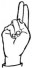 На ћирилици написано ПРЕДРАГ АЦАМОВИЋ састоји се из 15 слова [?]. Исписано ћириличном једноручном азбуком за глувонеме: